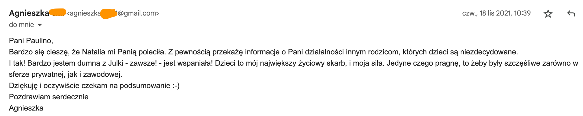 Pomagam nastolatkom wyznaczać ważne dla nich cele i przede wszystkim je sprecyzować. Pokazuje jak skutecznie komunikować swoje potrzeby i jak szanować potrzeby innych. Uczę technik, z których sama korzystam w radzeniu sobie z emocjami i ze stresem.
